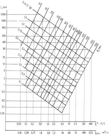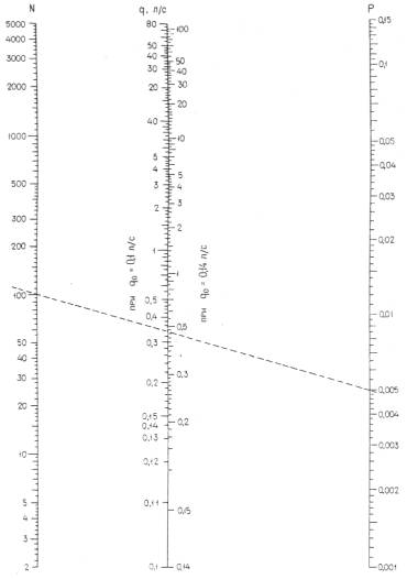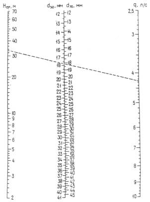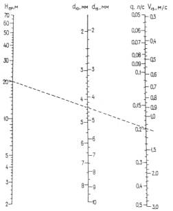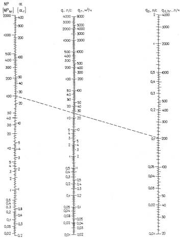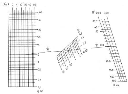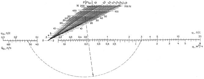 Черт. 1. Номограмма для определения секундных расходов воды q при q0 = 0,1 и