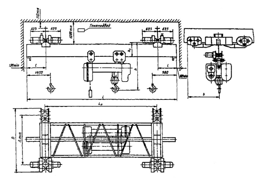 грузоподъемностью 1; 2; 3,2 и 5 т выпускают высотой подъема 3, 6, 9 и 12 м.