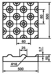 4.2.6 Для тактильных дорожных указателей, установленных на тротуарах, рекомендуется применять бетонные тротуарные плиты размерами 300´300 мм или 500´500 мм, изготовленные по ГОСТ 17608, с рифленой лицевой поверхностью.