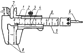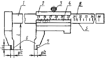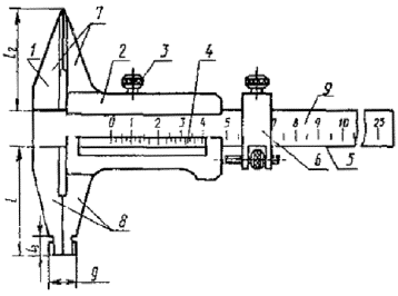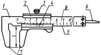 измерения внутренних размеров; 8 - шкала штанги.