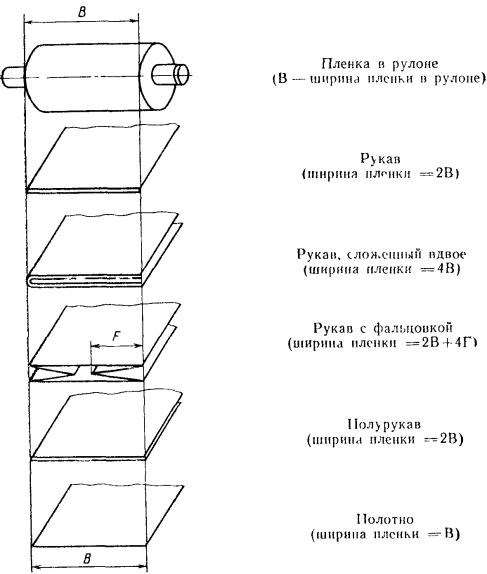 с одной стороны), полотна (рукав, разрезанный по всей длине с двух сторон с