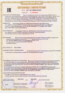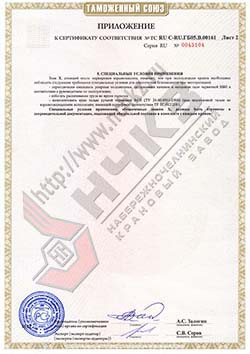 Сертификат соответствия (тамож.союз) на краны козловые до 200 т. (дл 27.10.2020г.) Сертификат соответствия (тамож.союз) на краны козловые до 200 т. (дл 27.10.2020г.)