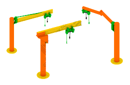 от 0,125 до 10 тонн, одноплечевые консольные краны с углами поворота 270 и 360 градусов и двуплечевые консольные краны с углами поворота 250+300 градусов и высотой подъема до 5 метров. Общепромышленного и взрывобезопасного исполнения.