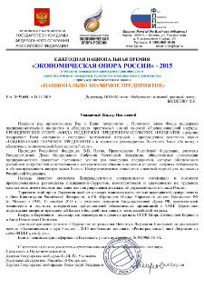 ЕЖЕГОДНАЯ НАЦИОНАЛЬНАЯ ПРЕМИЯ «ЭКОНОМИЧЕСКАЯ ОПОРА РОССИИ» - 2015