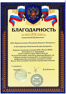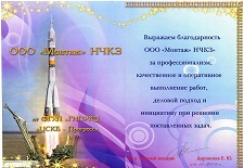 Выражаем благодарность ООО "Монтаж "НЧКЗ" за профессионализм, качественное и оперативное выполнение работ, деловой подход и инициативу при решении поставленных задач.