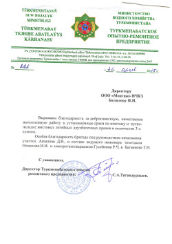 качественную и оперативную работу; не считаясь с личным временем, быстро собрали кран, обработали все сварные соединения краской-грунтом, оперативно реагировали