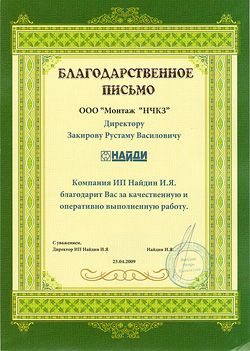 Компания ИП Найдин И.Я благодарит Вас за качественную и оперативно выполненную работу.